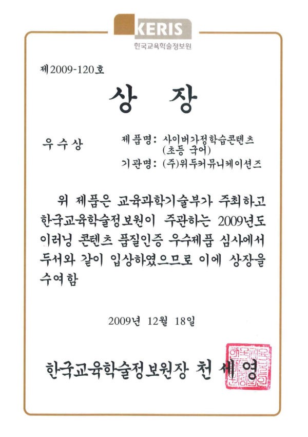 이러닝 콘텐츠 품질 인증 우수 심사 페이지 정보 작성자 WeDu 댓글 0건 조회 5,136회 작성일 19-05-30 19:32 본문 2009-12-18 우수상 제 2009-120호 이러닝 콘텐츠 품질 인증 우수 심사 한국교육학술정보원장 천세영 List Previous이러닝 기업의 수요 창출과 품질 향상 19.05.30 Next제 8회 디지털 이노베이션 대상 19.05.30