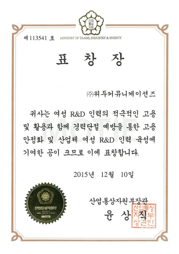 산업통상자원부 표창장 페이지 정보 작성자 WeDu 댓글 0건 조회 4,964회 작성일 19-05-30 19:34 본문 2015-12-10 표창장 제 113541호 여성 R&D 인력 고용 산업통상자원부장관 윤상직 List Previous서울클러스터 어워드 우수상 19.05.30 Next감사장 제 143호 19.05.30