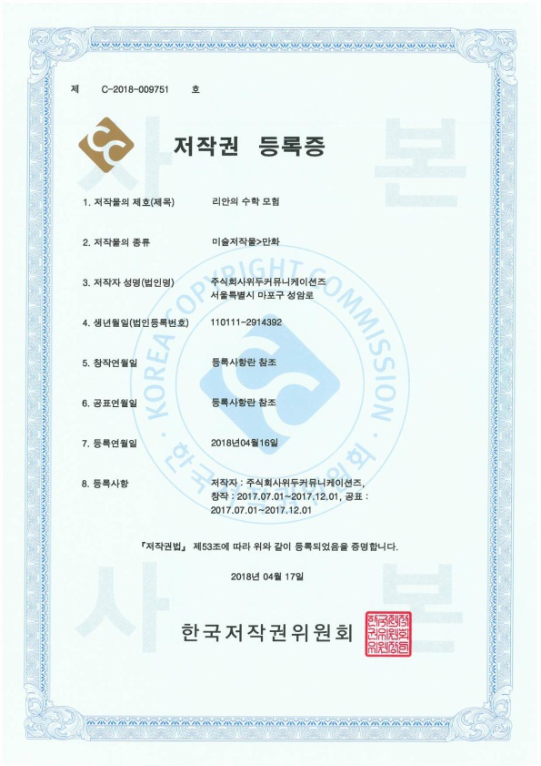 [한국/저작권] 리안의 수학 모험 페이지 정보 작성자 WeDu 댓글 0건 조회 4,847회 작성일 19-05-30 19:07 본문 2018-04-16 저작권 C-2018-009751 리안의 수학 모험 / 미술저작물>만화 List Previous[한국/저작권] 길리 19.05.30 Next[한국/저작권] 신입사원조기전력화 이러닝 콘텐츠 19.05.30